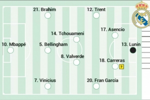 西班牙媒体《阿斯报》预测了皇马此役的首发阵容,姆巴佩领衔,维尼修斯、迪亚斯、阿诺德在列。
