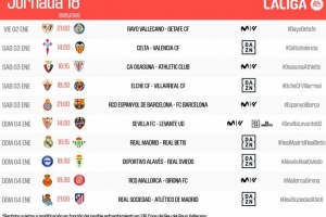 体育资讯12月2日讯 西甲官方公布第18轮联赛时间安排,以下是具体对阵信息。
