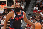 在快船末节追到15分的时候,哈登穿着训练服坐在替补席双眼无神望着场上的情况。在最后一节,快船队的4个主力球员都回来了,只有哈登还在替补席上。