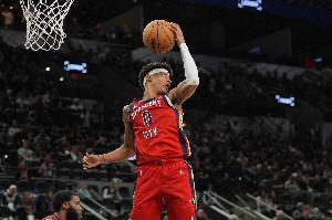 鹈鹕新秀费尔斯首节表现出色,不仅外线两度干拔三分命中,还有一条龙快攻上篮的精彩表现,他还助攻马特科维奇完成空接暴扣。