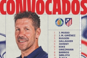 马竞客战赫塔费名单:格列兹曼、阿尔瓦雷斯在列,奥布拉克缺席